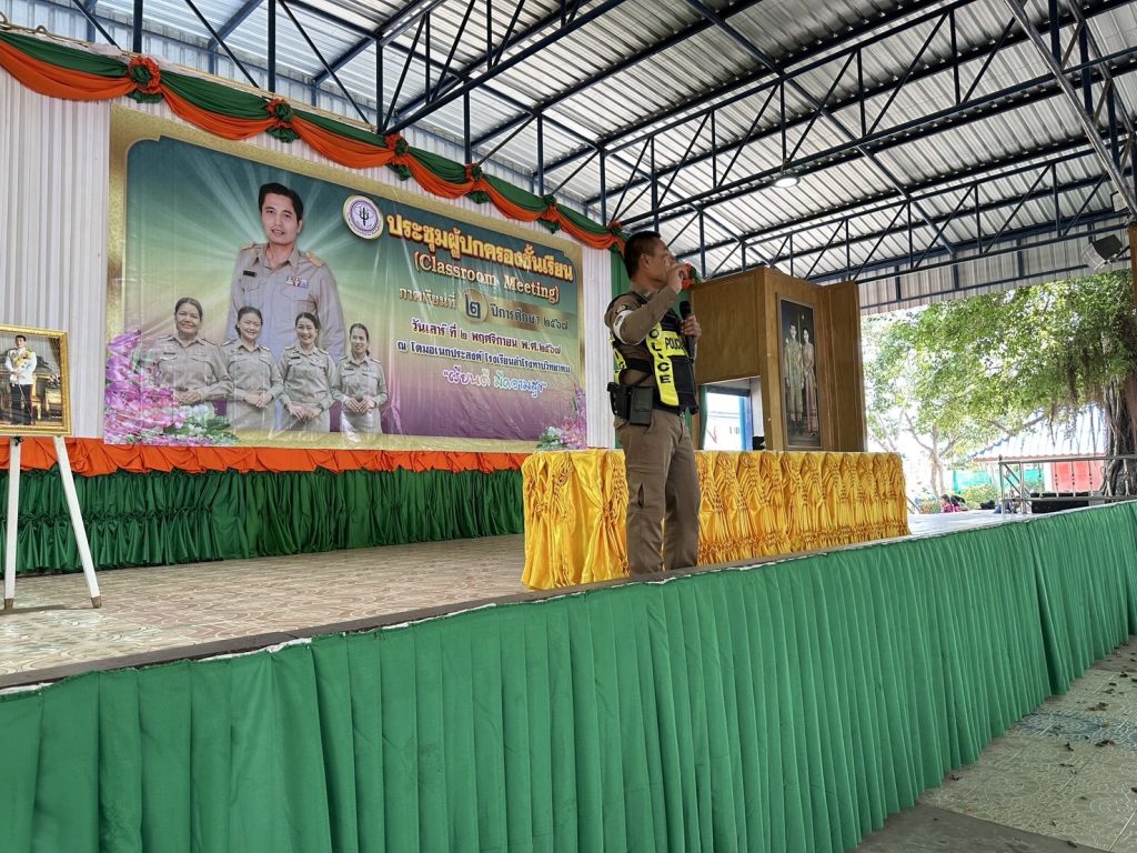 ด.ต.อำนวยจิต ภูมิประชา ผบ.หมู่ (ป.) สภ.สำโรงทาบ พร้อมชุดสายตรวจจราจร สภ.สำโรงทาบ ได้รับมอบหมายเป็นวิทยากรบรรยายความรู้เกี่ยวกับกฎหมายจราจรให้กับนักเรียนและผู้ปกครอง ในวันประชุมผู้ปกครอง ภาคเรียนที่ 2 ปีการศึกษา 2567 เพื่อให้นักเรียน ผู้ปกครอง ตระหนักในการใช้รถใช้ถนน และปฏิบัติตามกฎหมายจราจรถูกต้อง