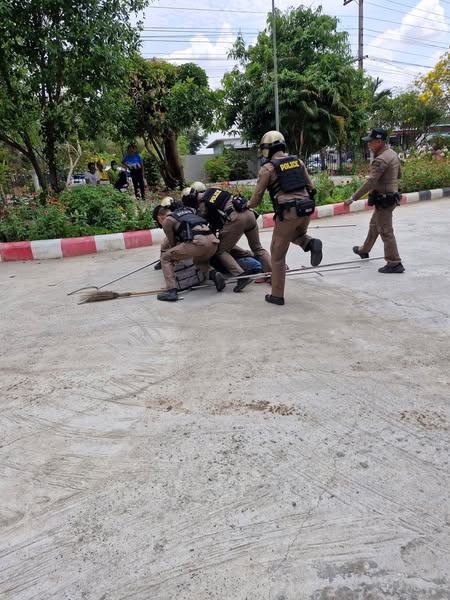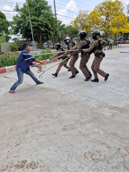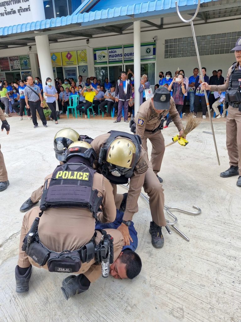 บูรณาการร่วมกันซักซ้อมแผนเผชิญเหตุ บุคคลผู้เสพผู้ติดยาเสพติด อาละวาด คลุ้มคลั่ง ก่อความรุนแรงในชุมชน โดยยึดหลักยุทธวิธีตามขั้นตอน (SOP) จนสามารถนำตัวส่ง โรงพยาบาลสำโรงทาบ เพื่อดำเนินการต่อไป