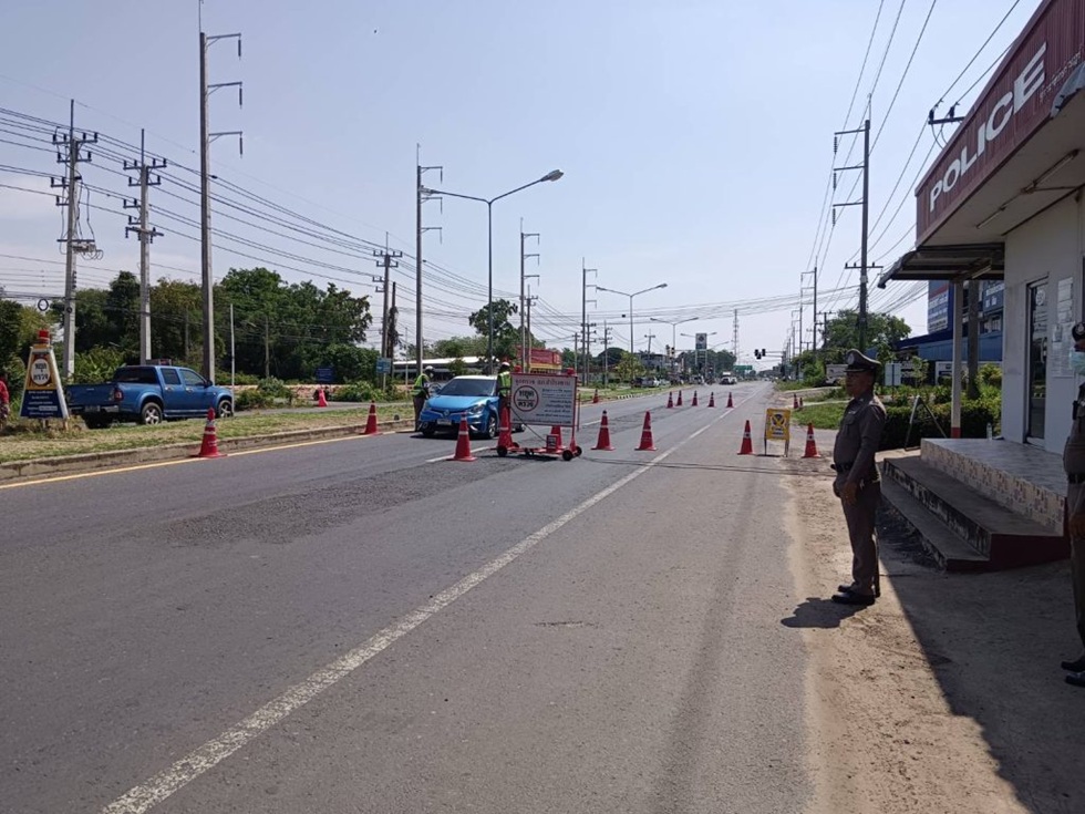 หัวหน้าสถานีตำรวจภูธรสำโรงทาบ เป็นผู้ควบคุมการตั้งจุดตรวจกวดขันวินัยจราจร
