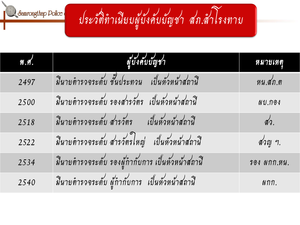 ประวัติความเป็นมาของสถานีตำรวจภูธรสำโรงทาบ