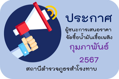ประกาศผู้ชนะการเสนอราคาจัดซื้อน้ำมันเชื้อเพลิง ประจำเดือน มีนาคม 2567