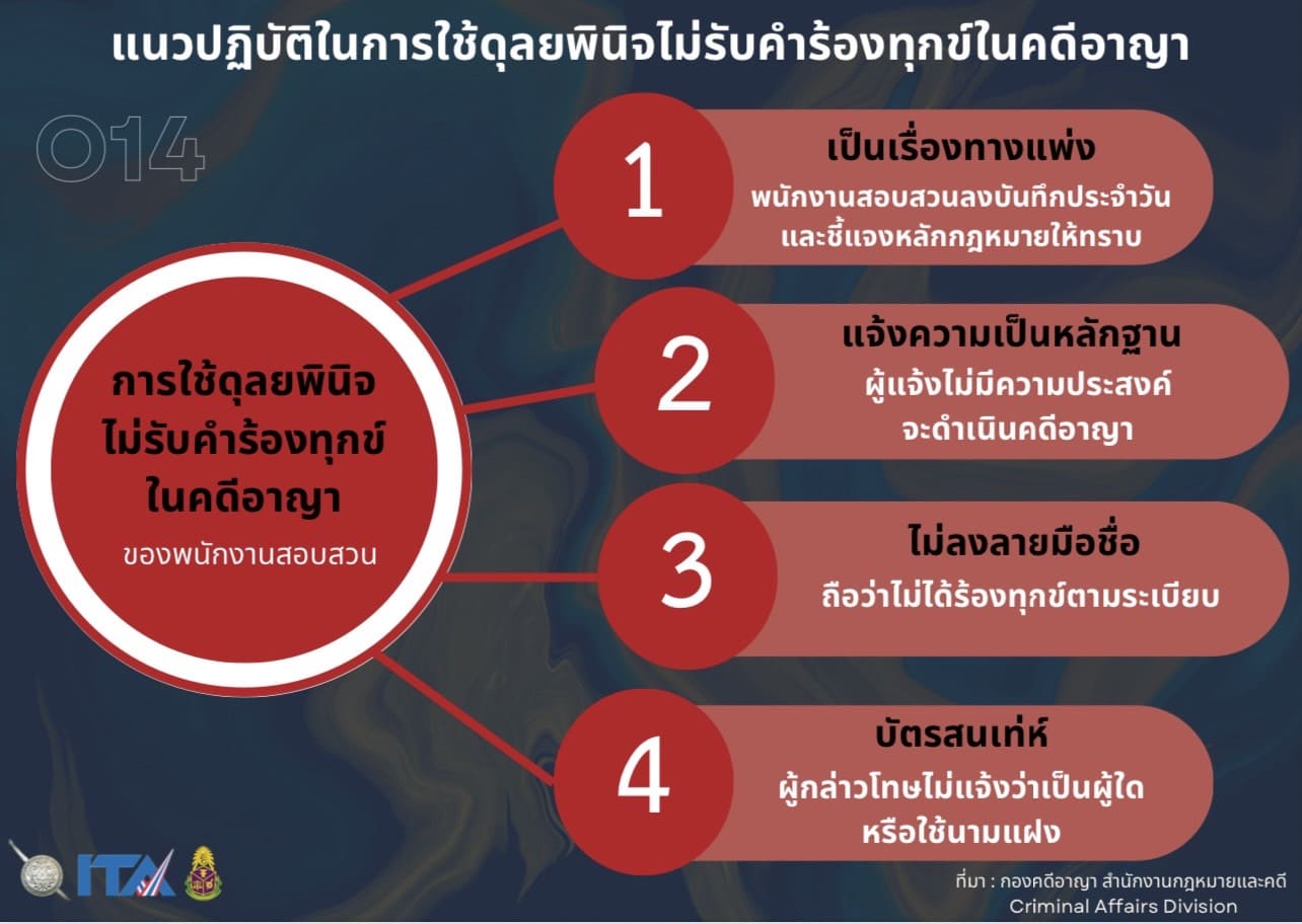 แนวปฏิบัติในการใช้ดุลยพินิจไม่รับคำร้องทุกข์ในคดีอาญา